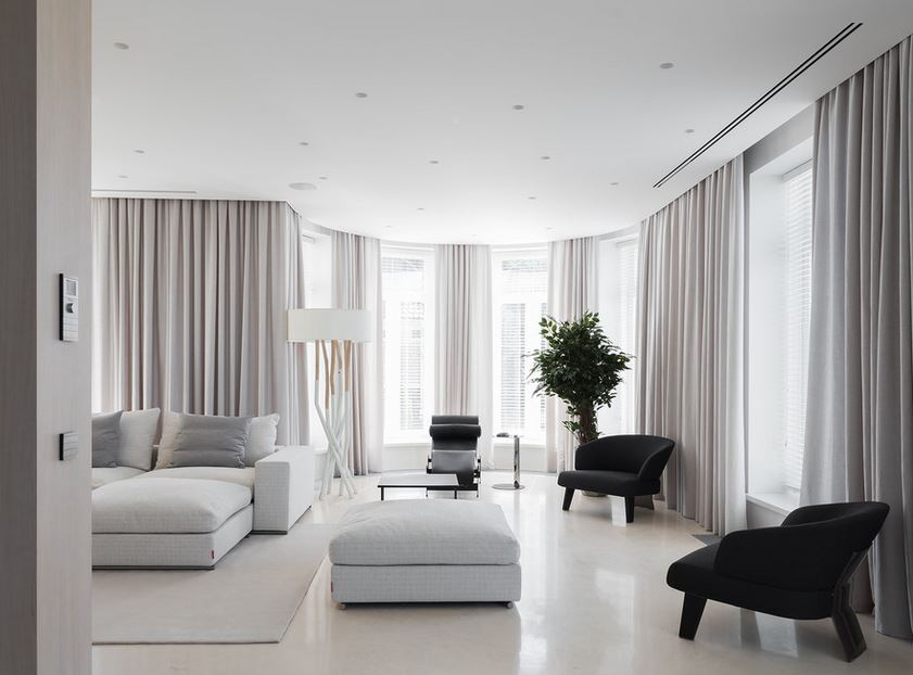 Как бы противоречиво ни прозвучало, светлые оттенки не должны заполнить собой все пространство. Если на светлом холсте вы правильно используете темные силуэты и пару ярких акцентов, приобретете бонус в виде дополнительного объема за счет подчеркнутой геометрии.