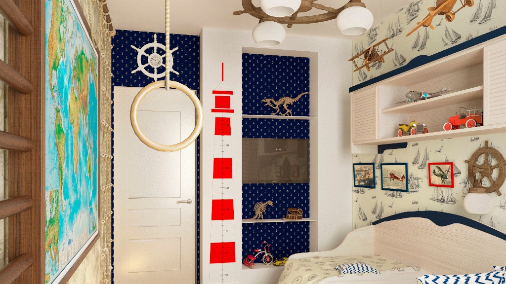 Беленый потолок и такие же стены сегодня уже не в новинку, так что обратите внимание на светлые, но более интересные оттенки: экрю, молочный, мятный, шалфеевый, лавандовый. Для отделки пола выбирайте беленый дуб, ковролин светлых тонов или нейтрального оттенка ламинат