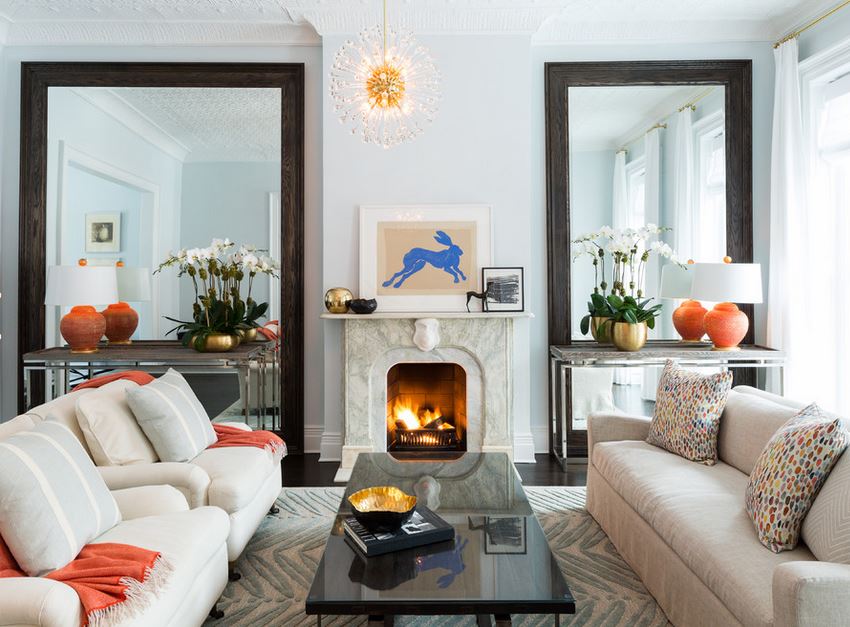 Зеркало — наш самый лучший друг, когда речь идет о визуальном увеличении пространства. Способность зеркальных поверхностей, в том числе хрустальных и металлических элементов, визуально расширять и осветлять интерьеры просто великолепна, ведь они способны значительно углубить помещение и в буквальном смысле удвоить количество света в комнате. Поэтому располагайте такие объекты напротив источников света.