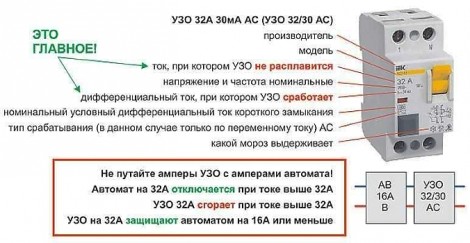 Существуют различные типы приборов, предназначенные для сетей с постоянным или переменным током. Одна из важных технических характеристик, которая обязательно присутствует в маркировке – сила тока утечки.