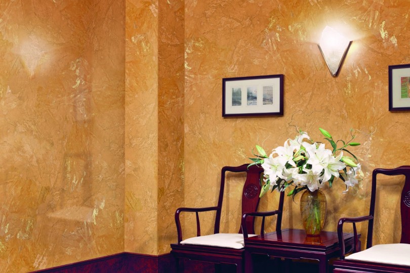 Наличие поверхностей, выполненных в этой технике, делают помещение настоящим дворцом. Даже оформляя этим материалом небольшой фрагмент стены, получится придать комнате респектабельный вид и повысить статус интерьера.