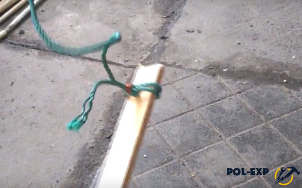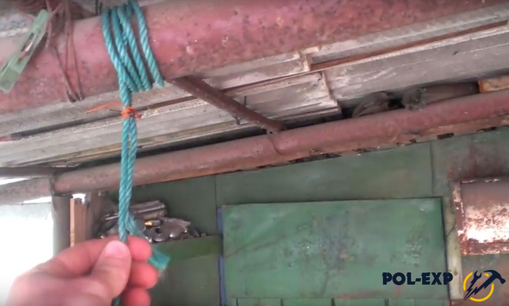Для изготовления веника пригодится канат длиной около 2 м, который подвешивается на какую-либо опору. К нижней его части привязывается деревянный рычаг.