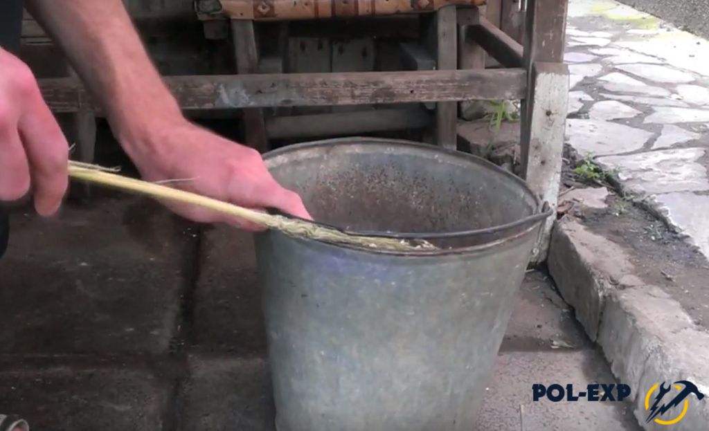 Далее со стеблей сорго удаляются семена – в противном случае они все окажутся в комнате во время уборки. Справиться с семенами поможет обычное металлическое ведро. Веточка сорго просовывается метелкой в ведро так, чтобы потом металлическая ручка ведра легла на ее стебель. Таким образом, ручка прижимается к ведру, а сорго находится между ними. Стебель тянется наружу, а семена все остаются в ведре благодаря ведру и ручке.
