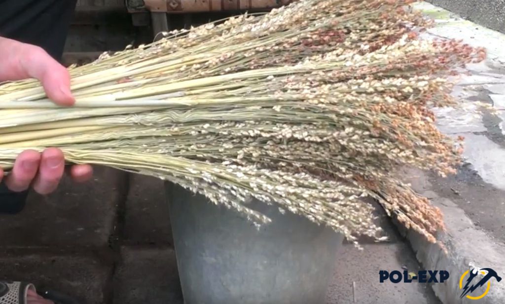 Веник делается не так просто, как кажется на первый взгляд. Первым делом созревшее сорго срезается и отправляется на просушку. Обычно производится она в сухом помещении, где есть хорошая циркуляция воздуха. Срок сушки материала составляет около 10 суток. Далее стебли сорго очищаются от листьев, удаляются лишние семена – делается это специальной гребенкой.