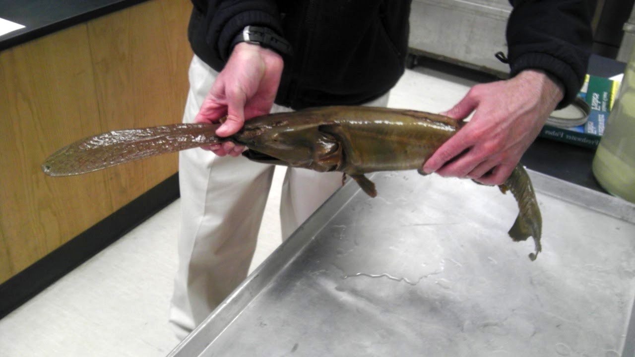 «Весло» рыбы составляет треть от размера всего тела.