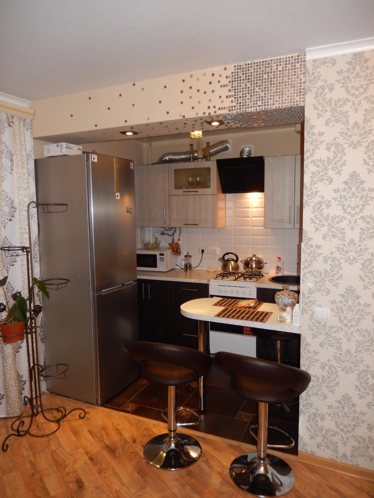 Наконец, отличной заменой обеденному столу станет барная стойка, которая может быть различного размера и формы. Она может стать продолжением подоконника или стать частью П-образной формы гарнитура, продолжая его. Барные стойки более компактны и поэтому занимают меньше места. Кроме того для квартиры-студии это замечательный способ зонировать пространство.