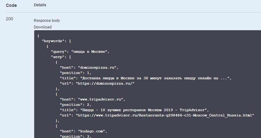 API парсит топ-100 десктопной и мобильной выдачи из Яндекса и Google по любым городам и регионам, включая нулевую позицию, рекламу, сниппеты и похожие запросы.