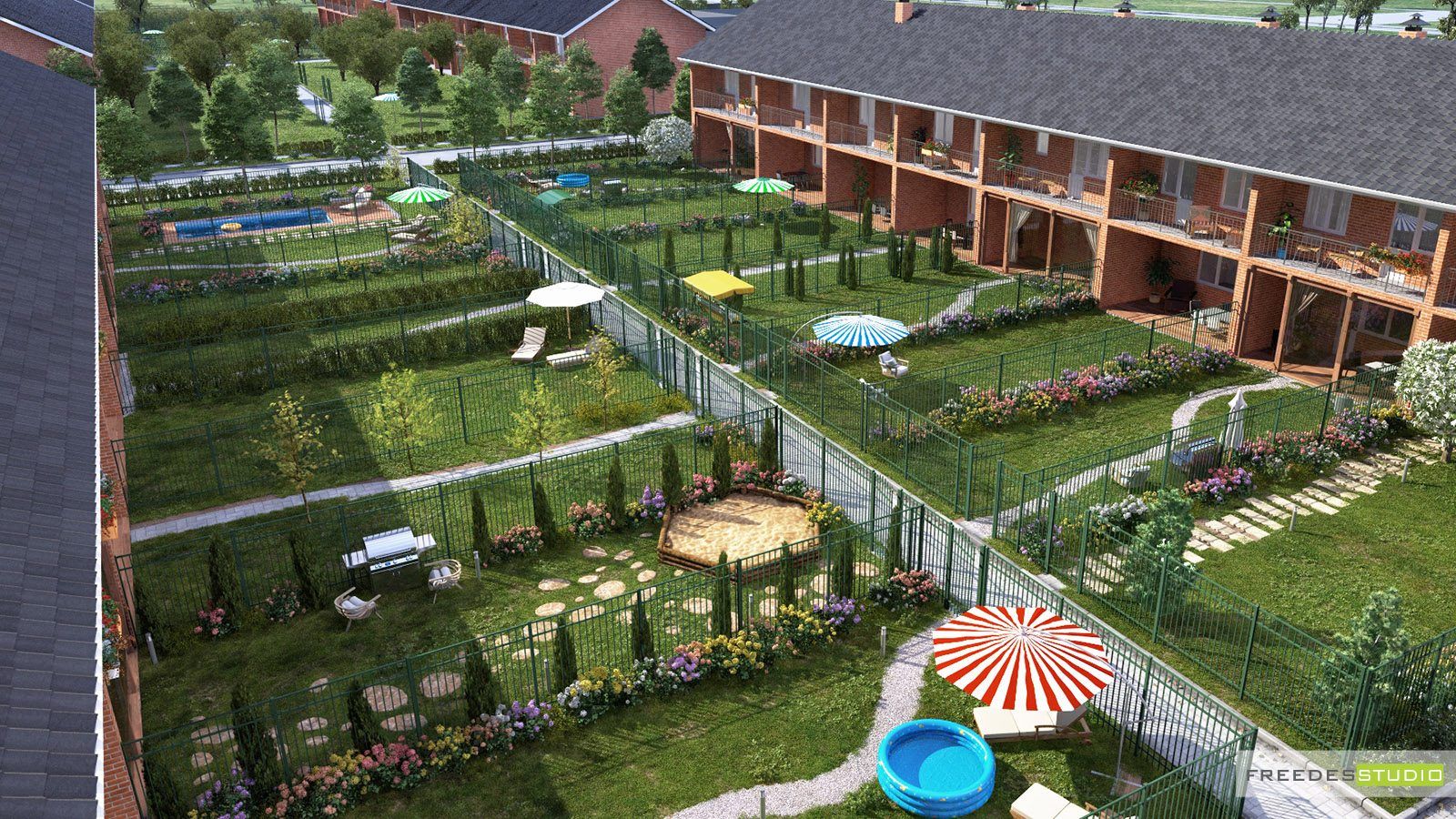 Визуализация экстерьера способна отлично имитировать в объемно-пространственной графике как жилые комплексы и отдельные коттеджные поселки, так и целые микрорайоны, вписанные в масштабные градостроительные планы.
