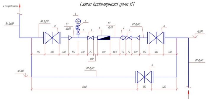 - монтаж водомерного узла, которые подбирается в зависимости от оборудования.