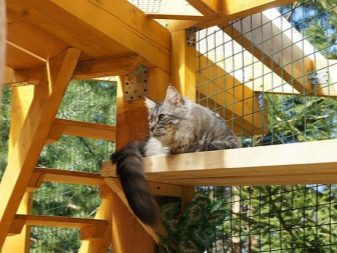 Чтобы побаловать любимца, в вольере рекомендуется установить лесенки, многоуровневые переходы, норки (закрытые домики, где кот может прятаться), горшки с цветами (а ещё лучше с кошачьей травой). Если размеры позволяют, то внутри вольера стоит поставить кресло, где хозяева могут отдыхать в компании своих домашних питомцев.