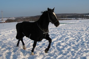 Вороной конь нуждается в том, чтобы его регулярно поили. Вода оказывает положительное влияние на процессы, проходящие в пищеварительной системе скакуна. Именно поэтому специалисты утверждают, что перед едой коня обязательно нужно сначала напоить. За счет этого принимаемый корм усвоится намного быстрее и лучше. Когда за окном стоит холодное время года, объемы водяных запасов требуется прибавлять, поскольку рацион вороных лошадей по большей части составляется из сухих кормов.