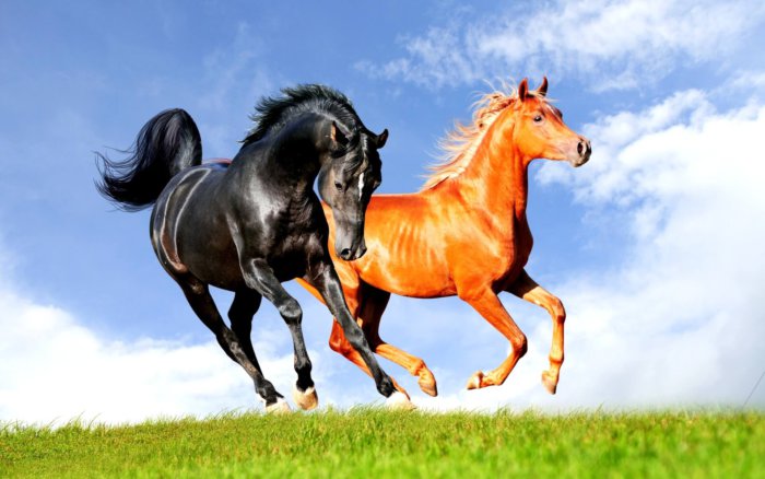Рыжая и вороная лошади