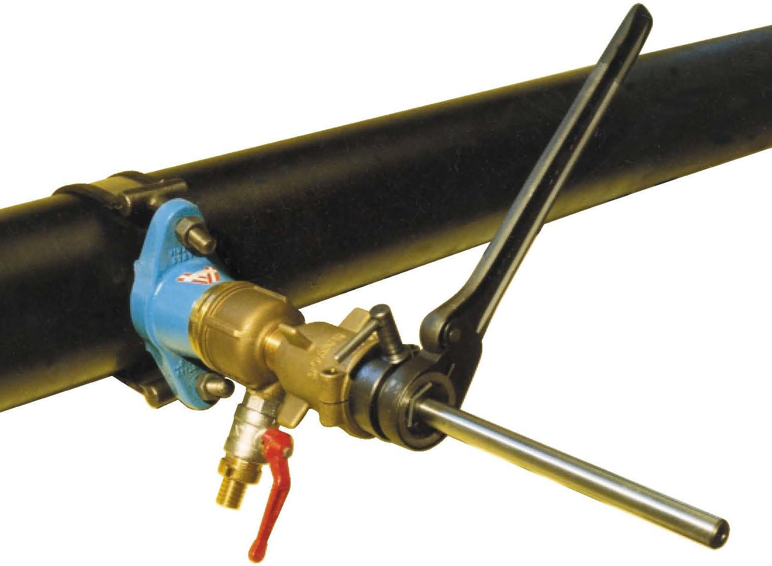На металлические трубы подсоединение сверлильной аппаратуры производится через приваренный патрубок (не на хомут)