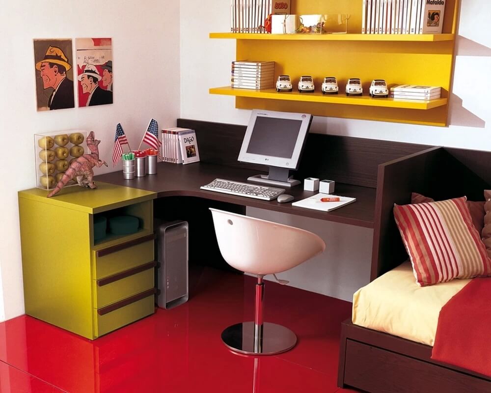 Если пространства комнаты хватает, можно приобрести школьнику стол Г-образной формы, который решает сразу несколько проблем – он сохраняет и большое рабочее место, и место для компьютера. Разделяя зону на две, можно не бояться, что школьник подвергается компьютерному излучению или совмещает домашние задания с прохождением компьютерной игры.