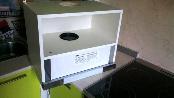 Внимание! Монтаж вытяжек такого типа можно производить несколькими способами. При желании можно не задействовать мебель, а создать в стене специальную нишу: так вам не придется использовать свободное место для хранения, но перепланировка может занять немало времени.. Сам процесс монтажа начните с создания разметки в шкафу или нише