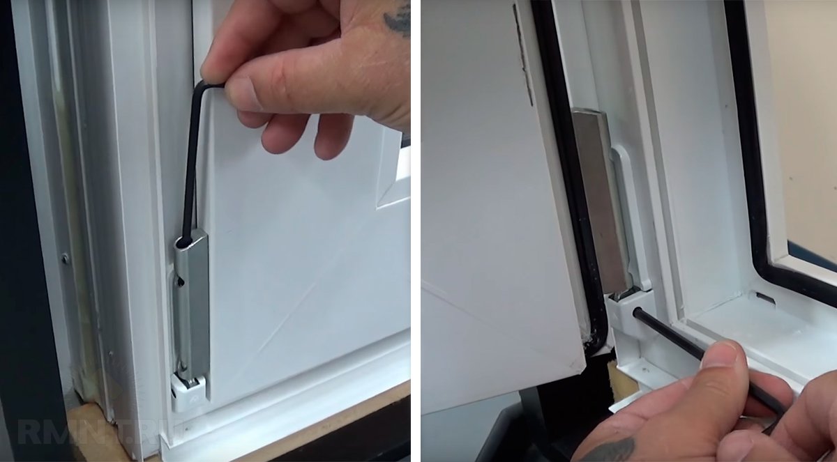 Суть регулировки в том, чтобы расположить створку пропорционально внутри проёма окна. Для этого имеется возможность плавно изменять положение и наклон створки путём настройки верхней и нижней петель. Основным инструментом в этом деле выступает шестигранный ключ на 4 мм. Несколько реже используется шестигранник на 3 мм или ключ типа TORX.
