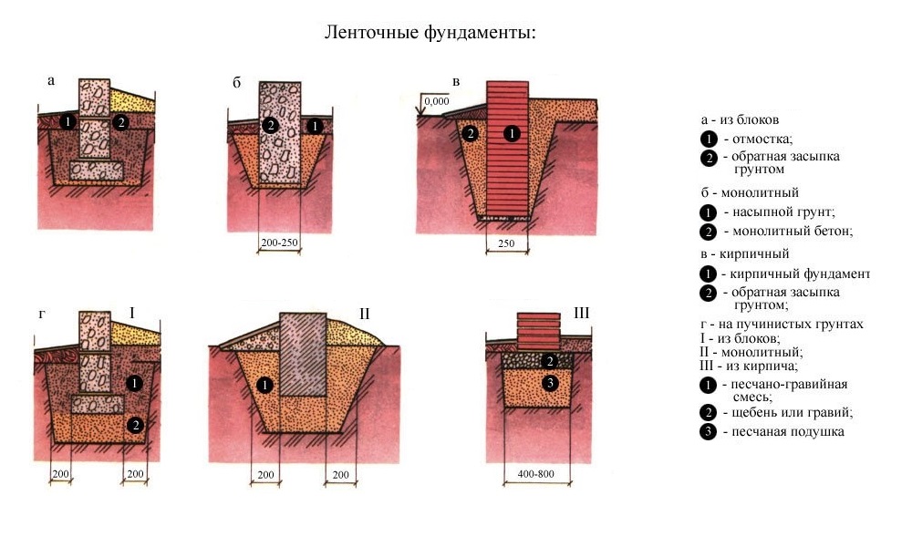 Ленточный фундамент целесообразно закладывать на глубину не более 2,5 м. Если же необходима большая глубина, то лучше рассматривать свайное основание. Его можно существенно усилить при помощи сварных балок.