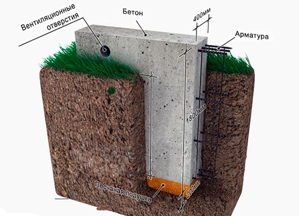 При заливке монолитной опоры своими руками, в отверстие вставляют опалубку, внутри которой монтируется арматура. Опалубка может выполняться из досок, фанеры, а также из обрезков пластиковых или асбоцементных труб. Внутрь опалубки заливается бетон и устанавливается анкерный болт, служащий для связки столба с нижним венцом здания. Покосившиеся, но ещё достаточно крепкие опоры можно просто выпрямить и зафиксировать после этого с помощью дополнительной бетонной заливки.