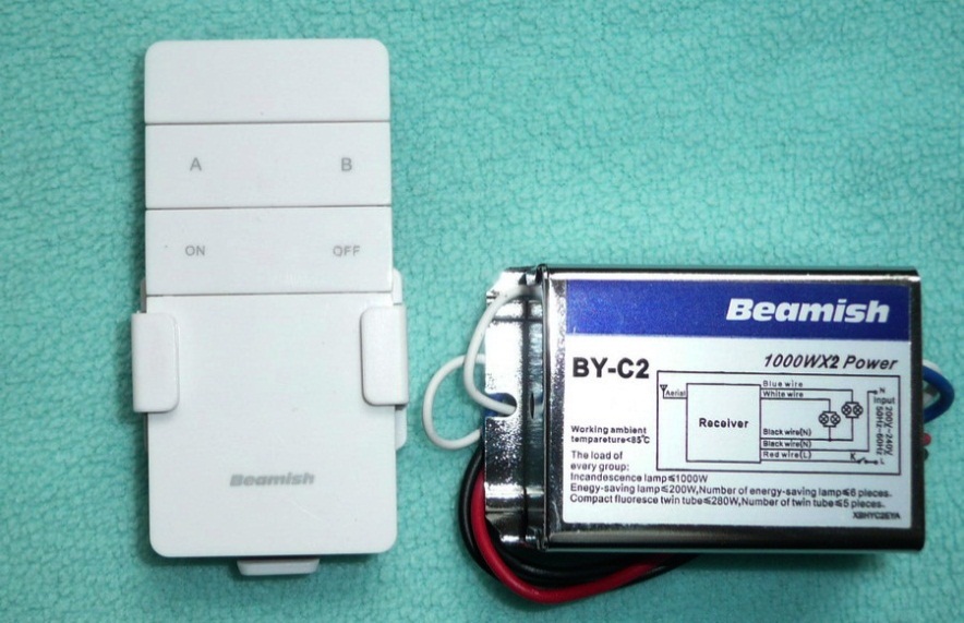 В зависимости от нажатой кнопки на пульте, реле работает с управляемыми контактами, как следствие – они включаются или выключаются. На фотографии выше представлена комбинация пульта и реле, которые позволяют работать в нескольких режимах: