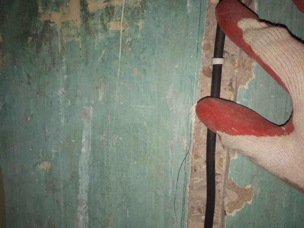 Идеально прокладывать кабели по старым каналам, ведь тогда можно без штробления уложить провода, и сэкономить время. Поэтому желательно использовать пути, по которым были проложены старые кабели. В основном можно использовать места, где алюминиевые кабели были просто заштукатурены, например, во швах между стеной и потолком. Швы являются местами, в которых легко проложить новую проводку.