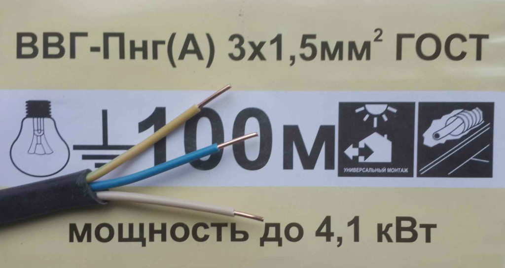 Трехжильный медный провод вполне подойдет для установки розеток в санузле, но стоит обратить внимание на сечение: для подключения рядовых приборов оно должно быть не менее 2,5 мм², для мощного электрооборудования – 4 мм². Отечественный вариант – ВВГнг. Если в старом жилье в квартирном щитке не предусмотрено заземление, то не только в ванной комнате, но во всей квартире электропроводку придется заменить на трехжильную