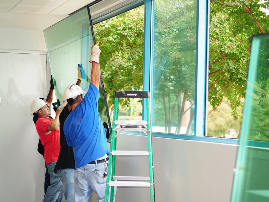 Бывают ситуации, когда стеклопакет в процессе монтажа был поврежден, и на одном из стекол появилась трещина. В этом случае не обязательно менять весь стеклопакет, а можно заменить лишь поврежденное стекло. Чтобы заменить стекло, необходимо вынуть штапики и извлечь стеклопакет из профиля. Для максимального удобства стеклопакет укладывают на устойчивую и ровную горизонтальную поверхность разбитым стеклом вверх.