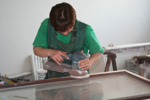7. На одну сторону развинченной створки, по периметру, кистью, нанесите разделительную смазку до создания слоя толщиной 0,5 мм