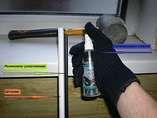 Обработка уплотнителей стеклопакета силиконовой смазкой или вазелином