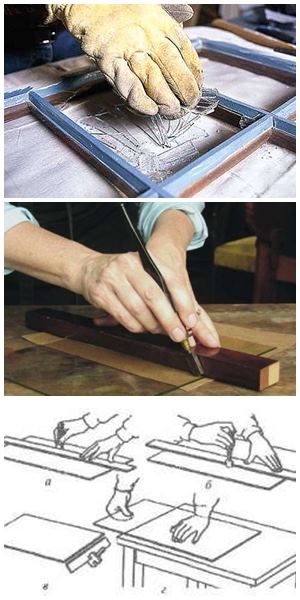 Для остекленения окон обычно используется стекло толщиной 2-3 мм. Стекло размечается по длине и ширине так, чтобы оно было на 3-5 мм короче соответствующих размеров между бортиками фальцев* оконного переплета. Чтобы в углах нарезанного стекла не было перекосов, их размечают по угольнику, делая засечки на кромках.