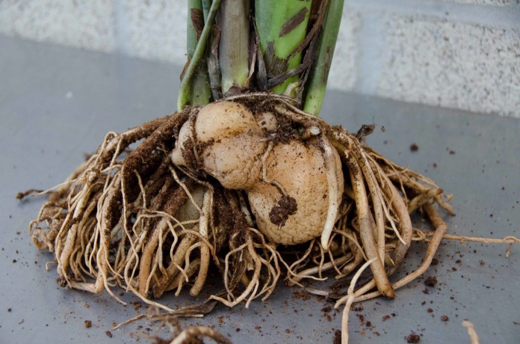 Для больных экземпляров такой способ не подходит. Придется полностью очистить корни от грунта, промыть и отрезать поврежденные участки. Так же стоит поступать при разделении крупных растений.