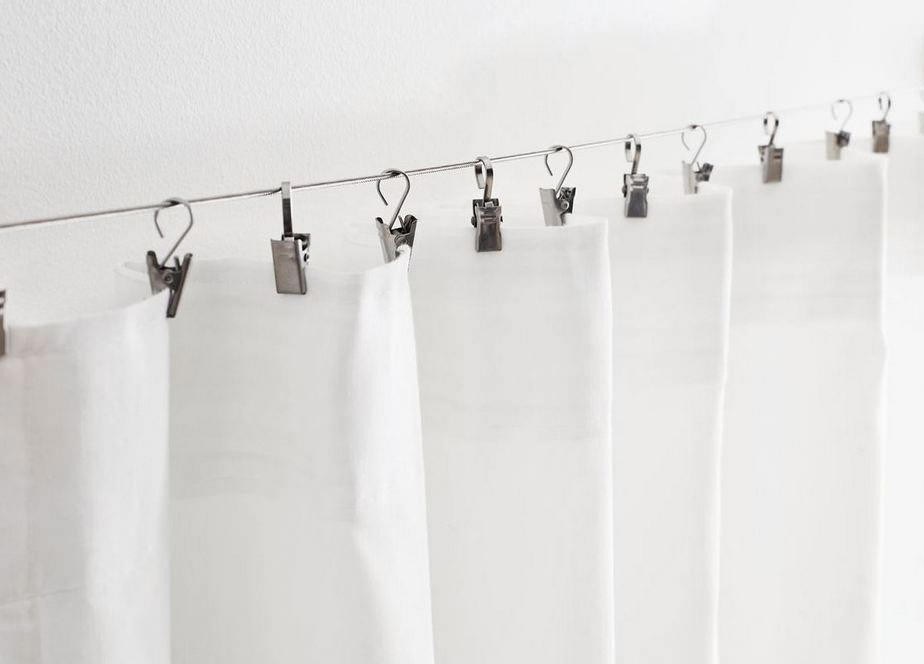 Шторы на крючках и зажимах (прищепках, крокодильчиках), пожалуй, самые традиционные и привычные для нас. Раньше такие крепления делали только из металла. Сегодня их производят и из прочного гибкого пластика. Принцип действия всех этих креплений одинаков. На кольцах или металлических или пластиковых петлях, которые нанизываются на круглый или струнный карниз фиксируются прищепки крючки или магниты, которые и удерживают занавески на карнизе.