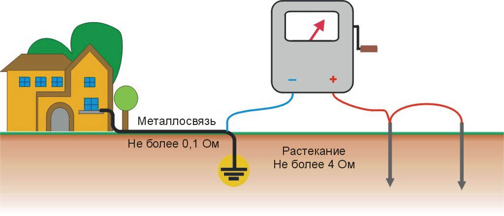 По завершении комплекса монтажных работ, но еще перед тем, как подключить заземление непосредственно к ГЗШ – потребуется проверить его на работоспособность. Существуют хорошо отработанные методики оценки состояния и определение величины сопротивления стеканию тока на землю, учитывающие все составляющие последовательной цепочки (включая переходные контакты).