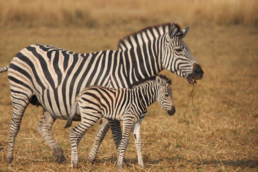Первые дни мать ревностно оберегает своего детеныша, а при малейшей опасности, угрожающей малышу, скрывается в табуне под защитой сородичей. Несмотря на такую опеку, половина жеребят еще в младенчестве погибают от нападений главных врагов зебр — львов и гиен.