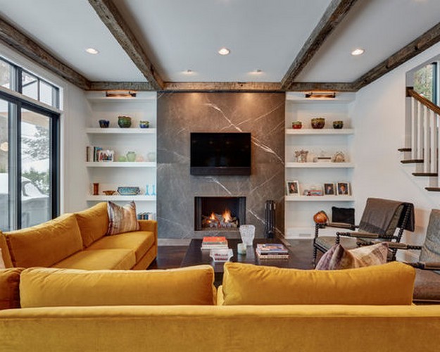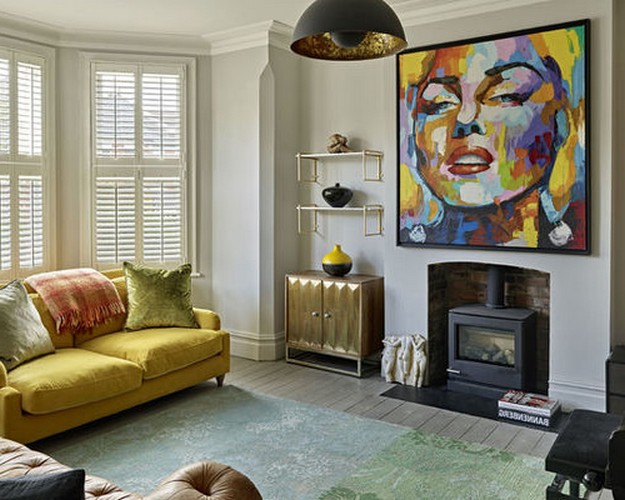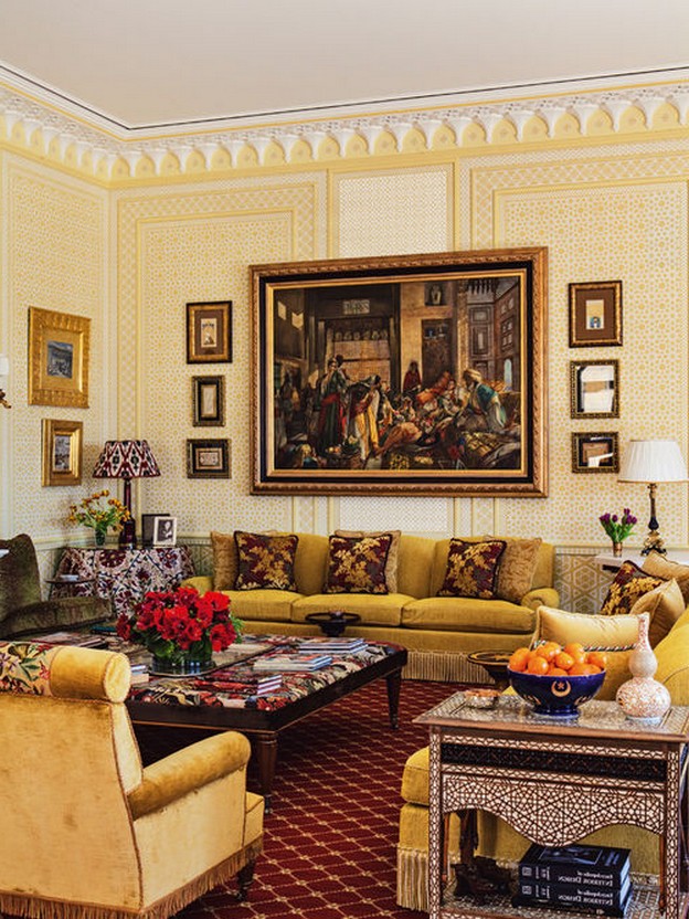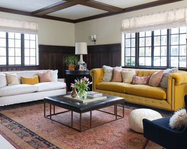 Желтый и все его оттенки – золотой, горчичный или охра, — создадут настоящую роскошь, особенно для гостиной в стиле ампир, арт-деко.