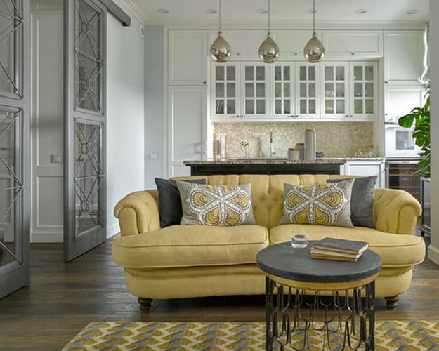 Смотрите галерею фото желтого дивана в интерьере разных комнат: