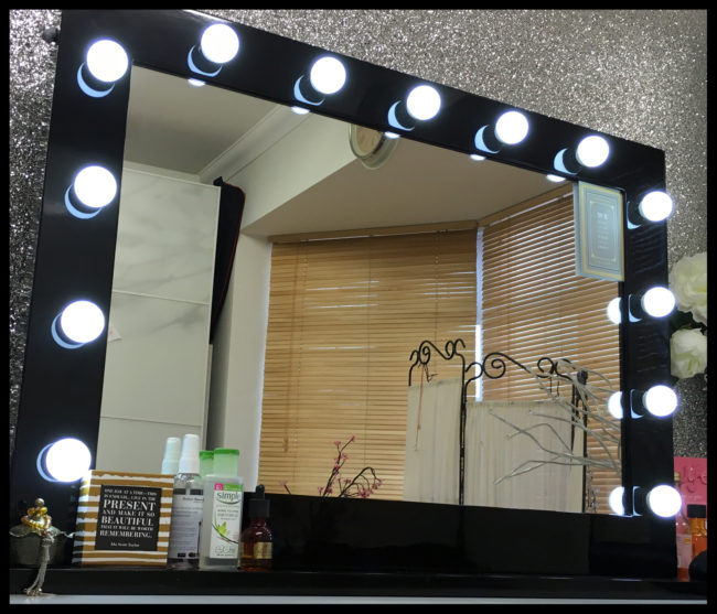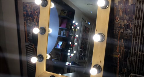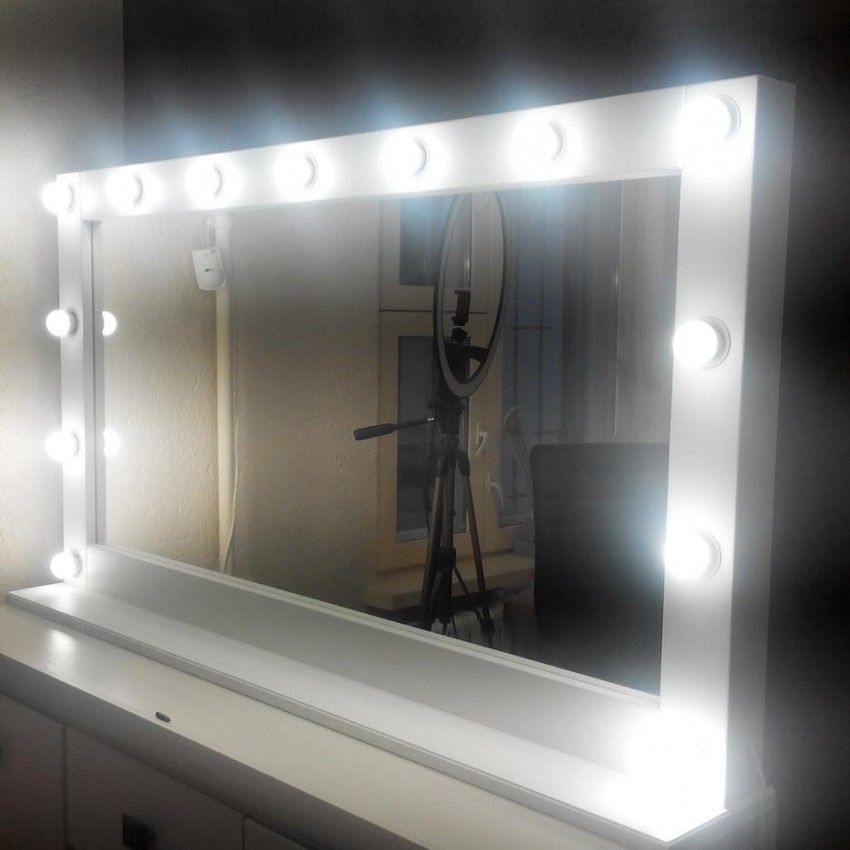 У нас получилось гримёрное зеркало с подсветкой на стену, выполненное своими руками.