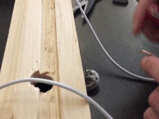 Просверлить сквозное отверстие в раме внутри патрона, чтобы там разместилось 2 кабеля. |