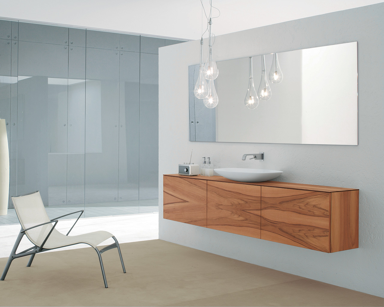В ванной комнате зеркало чаще вешается над умывальником. При этом модель должна обладать защитным слоем и плотно прилегающую раму из нержавейки или пластика. Конструкцию крепят на шарнирах. При этом сочетается два зеркала. Одно стандартное на стене, а второе на выдвижной ручке.