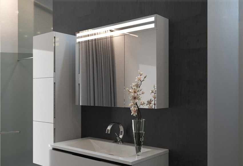 - Бывают конструкции со встроенными увеличительными стеклами. Отражение в этих изделиях расширенное, именно по этой причине обеспечивается комфортное умывание или бритье;