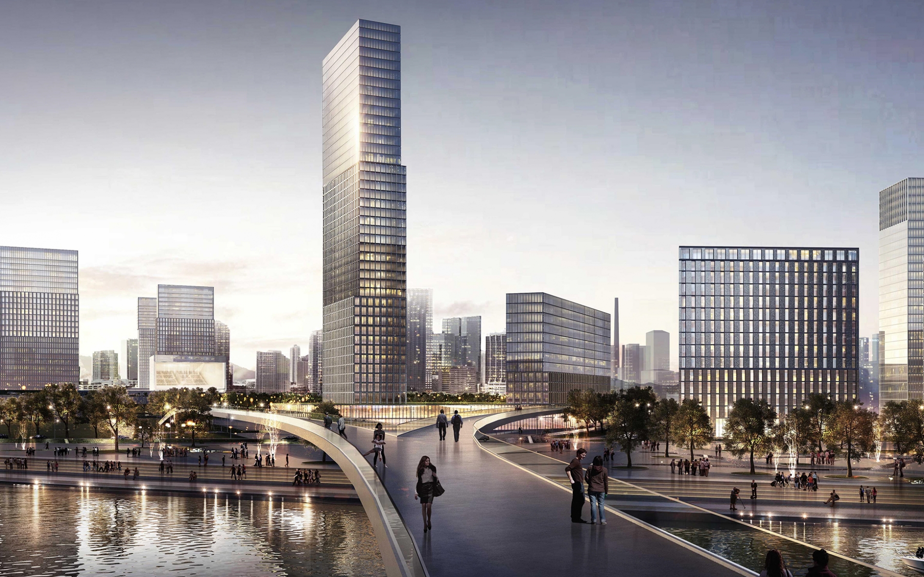 На участке 5 появятся сразу три крупных объекта. Первый из них – ЖК, разработанный бюро «Мезонпроект», состоит из трех жилых корпусов высотой от 7 до 14 этажей, на первом этаже предусмотрены помещения под офисы. Площадь объекта – 34,2 тыс. кв. м.