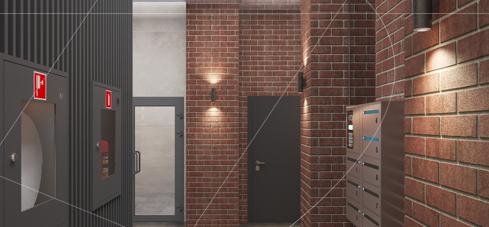 В каждом из восьми строящихся корпусов будут организованы дизайнерские входные группы. Минималистичные интерьеры разработаны по индивидуальным проектам. В них сочетается скандинавская строгость и уют популярного стиля лофт. Площадь холлов составляет около 200 кв. м. При входе в секции есть место для консьержа и охраны, а также отдельные помещения для хранения колясок и велосипедов.