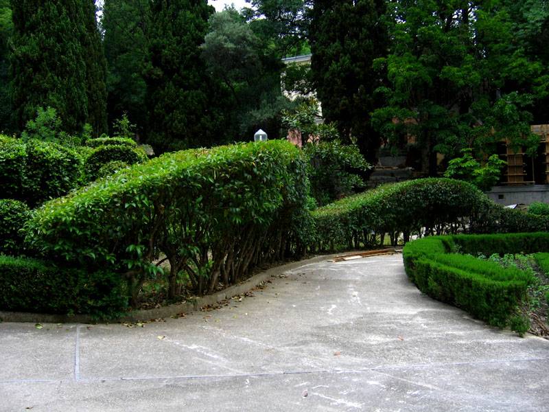 Забор округлой формы формируют из раскидистых растений, таких как лавровишня, фотиния и бирючина. В этом случае стена тоже должна расширяться сверху вниз, чтобы все ветки получали достаточно света