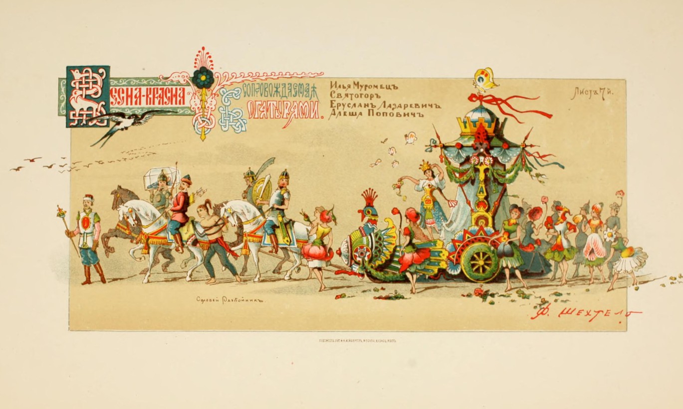 Фёдор Шехтель. Иллюстрации к альбому «Весна красна». Издан Михаилом Лентовским. 1883