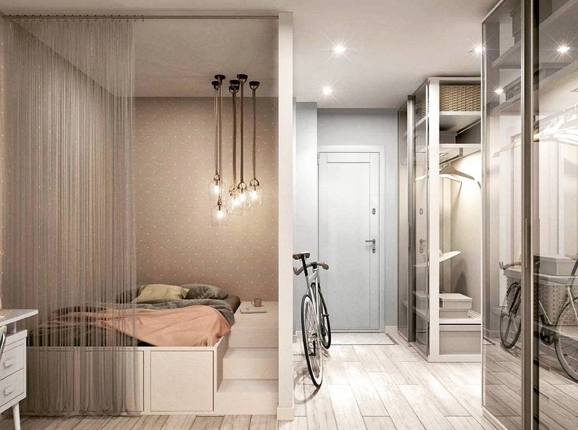 - даже в условиях однокомнатной студии можно создать приватное пространство для каждого члена семьи;