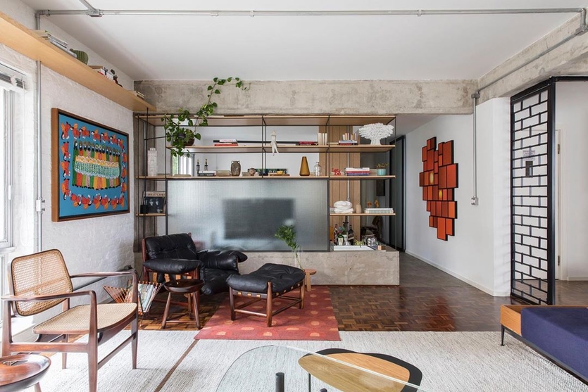 | Однокомнатная квартира для семьи с ребенком | Стеллаж является элементом, разделяющим на зоны для родителей и для детей. | Подойдут двухсторонние перегородки со стеклянными вставками. Они позволят размещать детские и родительские вещи с разных сторон, и при этом взрослые смогут приглядывать за малышами, не нарушая их приватности. |