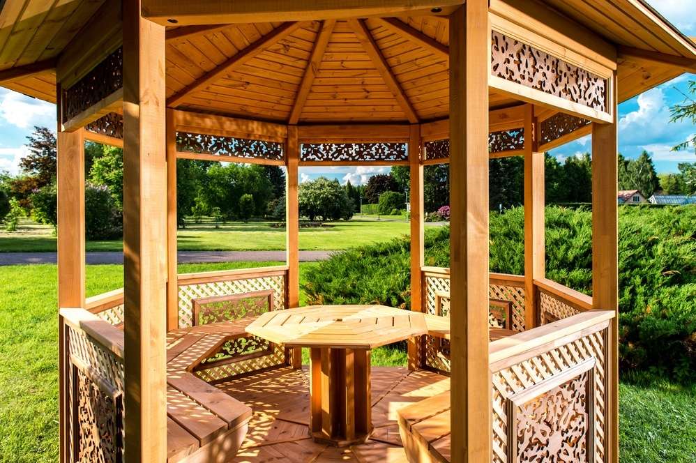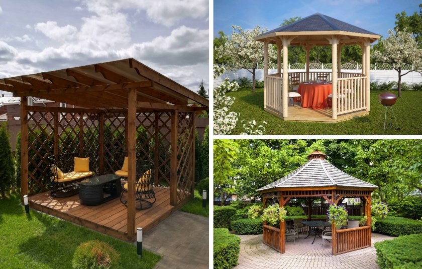 Если возводится беседка своими руками из дерева, то рекомендуется выбирать именно материал из этих трех пород деревьев.