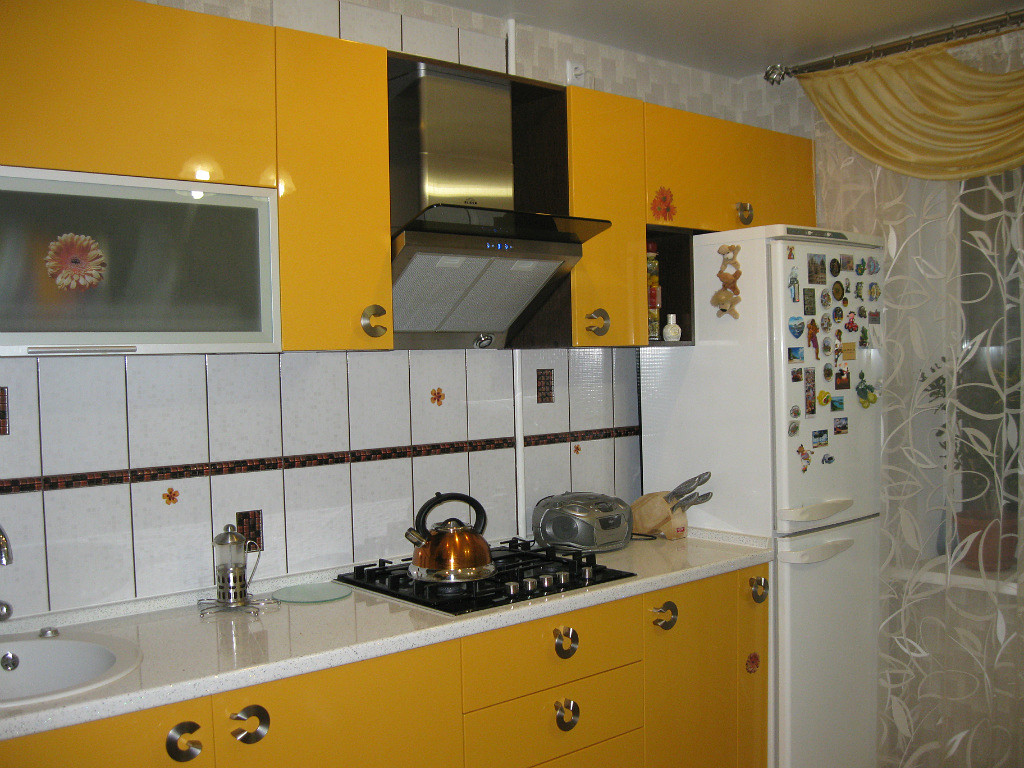 Для настоящих оптимистов. Отлично подойдет для создания стиля «модерн». Желтыми в помещении должны быть некоторые элементы, а не вся кухня — например, фасады гарнитура, шторы, люстра, аксессуары.