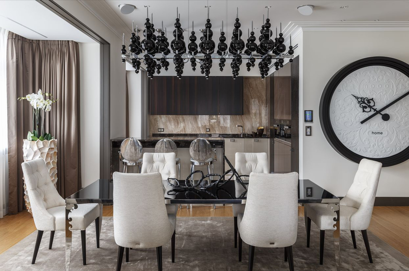 Пожалуй, самый дорогой и роскошный цвет из всех существующих. Может быть использован в любом интерьере, требует особого ухода, выглядит строго и холодно. Чтобы не превратить помещение в стерильный кабинет врача, рекомендуется делать вкрапление в интерьер других светлых или контрастных оттенков, тогда оно «заиграет» и преобразится.