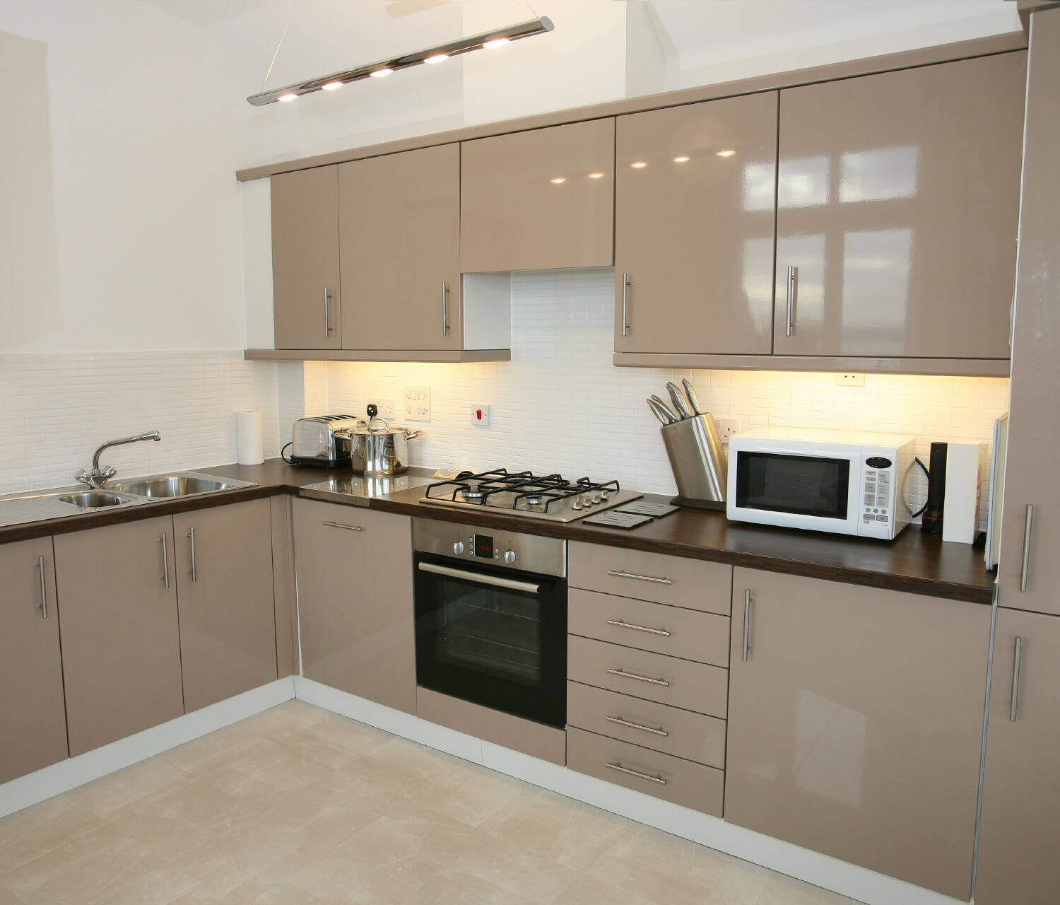 Белая кухня принуждает к постоянной уборке. Бежевая же способна скрыть многие загрязнения