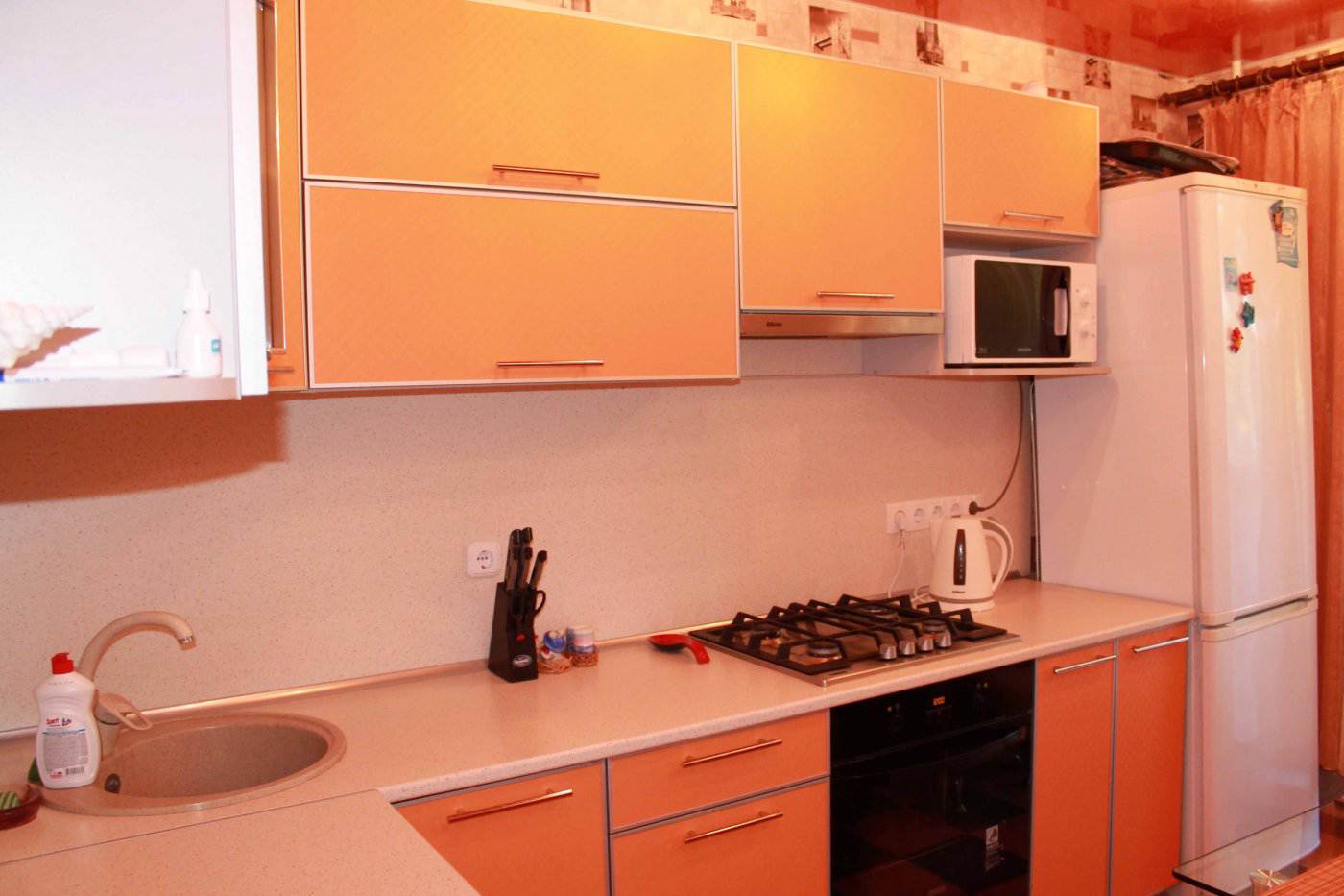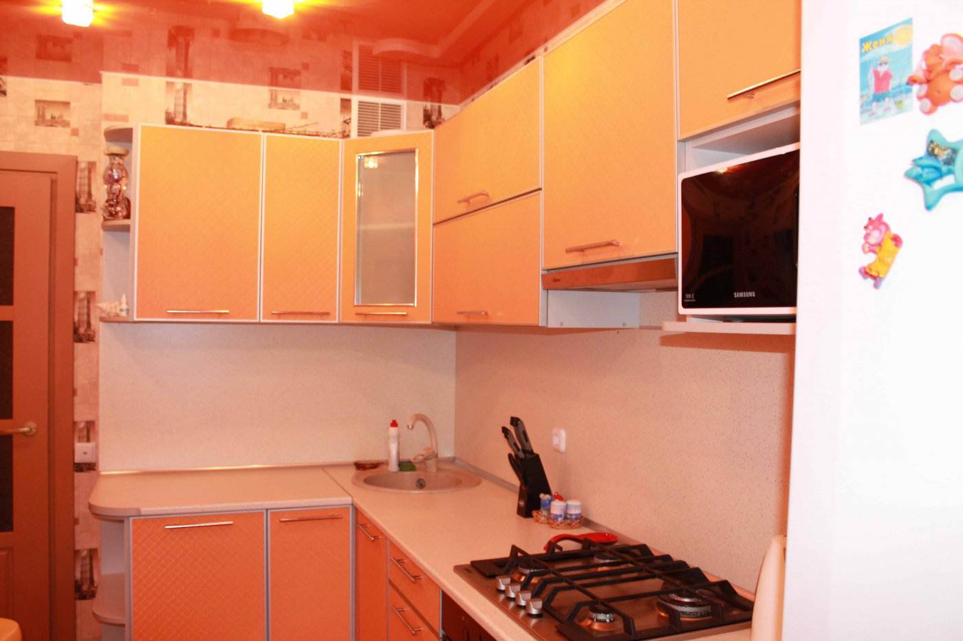 Идеальный способ обустройства интерьера — совместить белые стены с оранжевым гарнитуром. Пол на кухне может быть бежевым. Прекрасно смотрится также одна оранжевая стена в сочетании с тремя совершенно белыми.